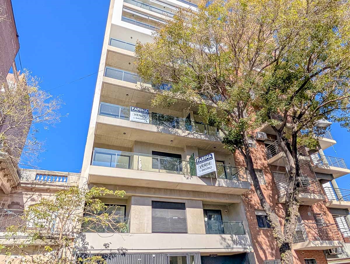 Departamento de 1 dormitorio inmenso al frente norte: ventilación cruzada. cocina equipada semiseparada por barra desayunadora. baño completo. dormitorio con placard. Piso 3 a de 58,81 m2 (50,54 m2 cubiertos + 8,27 m2 de balcón)